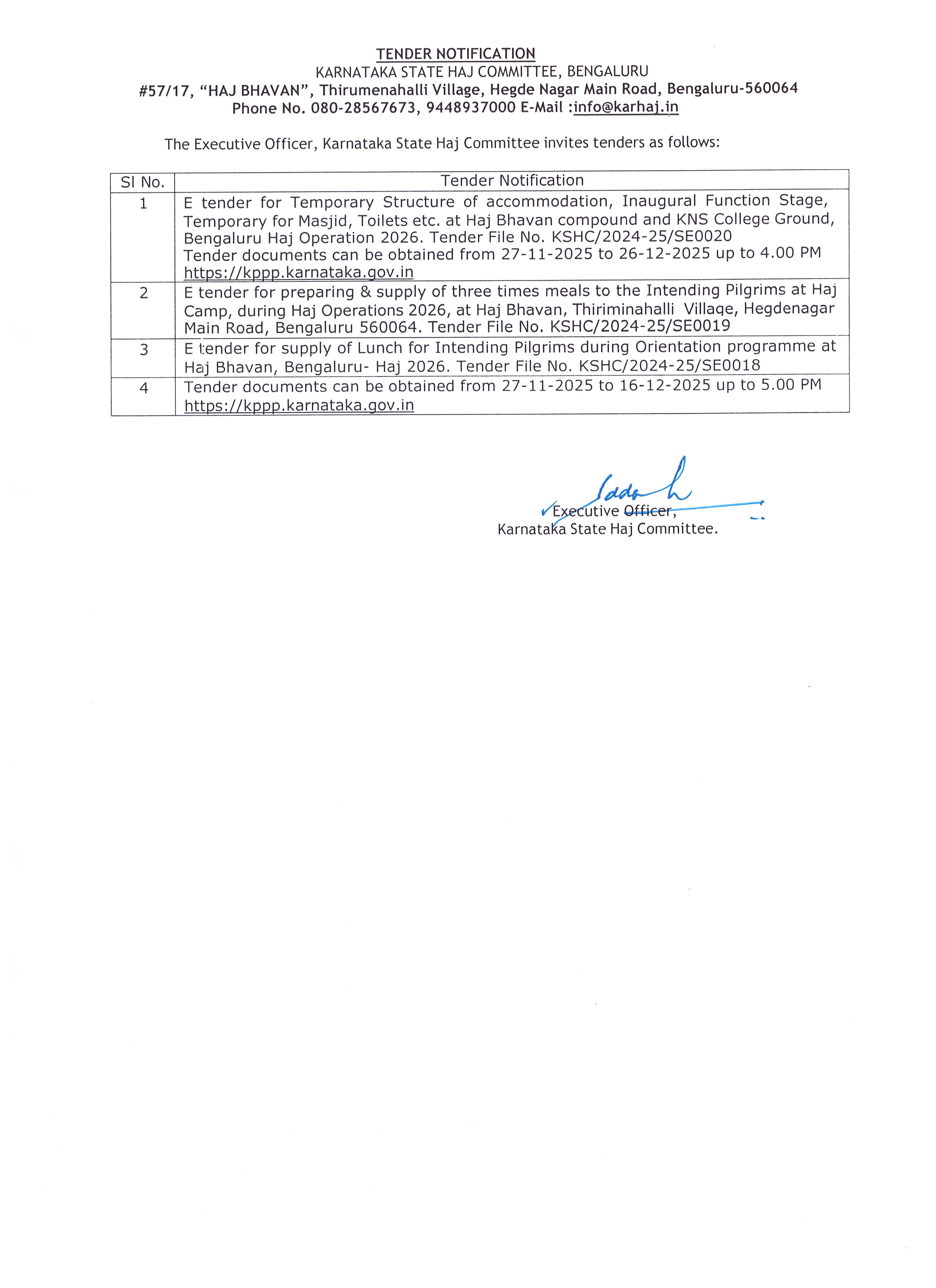 Tender notification for Haj 2025 |